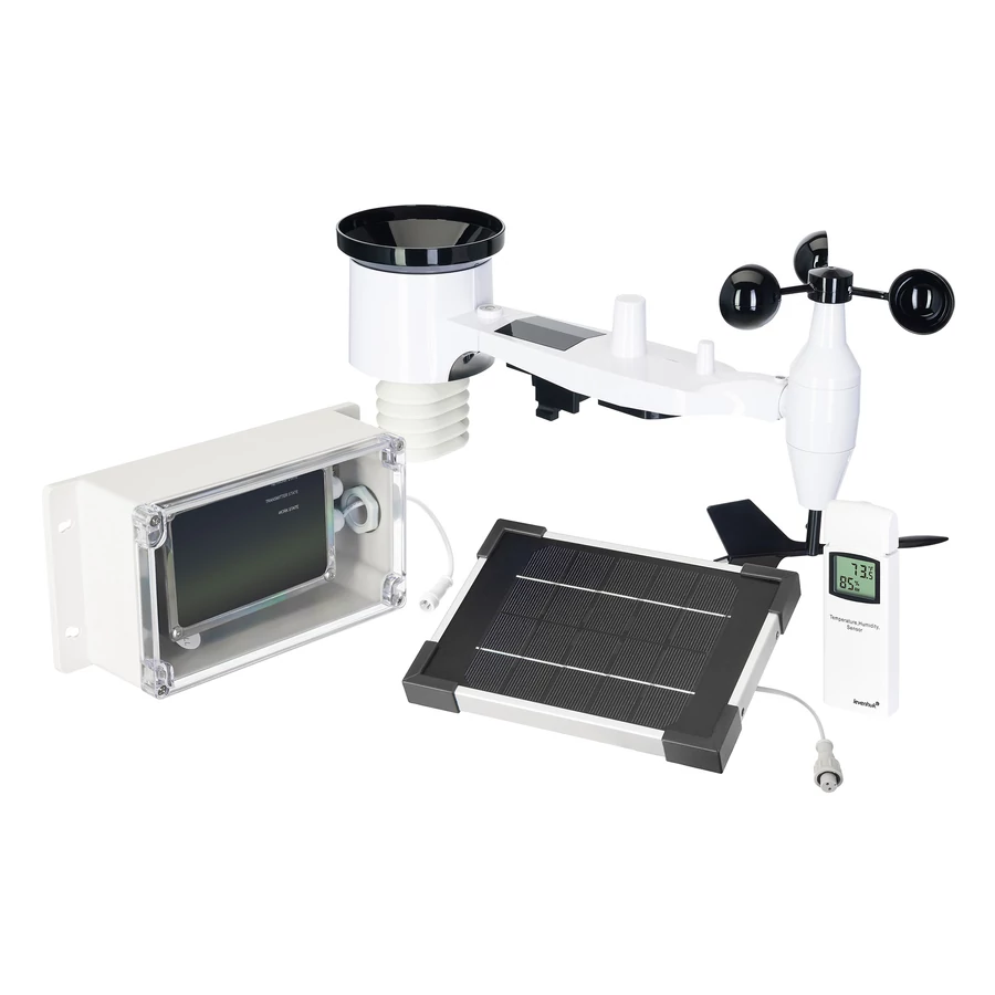 A Levenhuk Wezzer PRO LP700 időjárás-állomás olyan modern berendezés, amely mind a beltéri, mind a kültéri környezetről pontos információval szolgál. A készülék pontosan rögzíti a légköri nyomást, a hőmérsékletet és a levegő páratartalmát beltérben, és még több paramétert kültéren: a hőmérsékletet, a páratartalmat, a szélirányt, a szélsebességet, a csapadék mennyiségét, a fényerősséget és UV-indexet. Az időjárás-állomás tökéletes otthoni használatra, valamint mezőgazdasági céllal az időjárási viszonyok értékelésére.