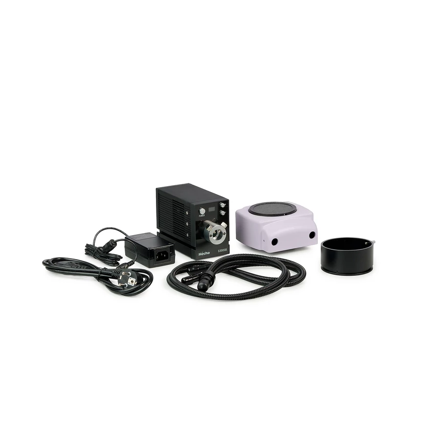 A rögzítőelemet a mikroszkóp fejrésze és a zoom objektív közé kell beszerelni. A fényforrás a lámpabúrában található. A lámpabúra rugalmas, kettős fényvezetőn keresztül csatlakozik a rögzítéshez. A fény a fényvezetőn keresztül jut be a rögzítőelembe, majd az objektíven keresztül a mintára esik. Az ilyen típusú megvilágítási módszer lehetővé teszi, hogy Ön a mikroszkóp objektívjének erős nagyítása mellett is tiszta, tükröződés és árnyék nélküli képet kapjon.